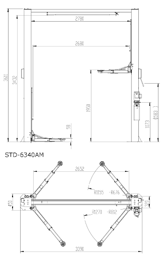 Thông số kỹ thuật Cầu nâng 2 trụ Titano STD-6340AM-2900 :