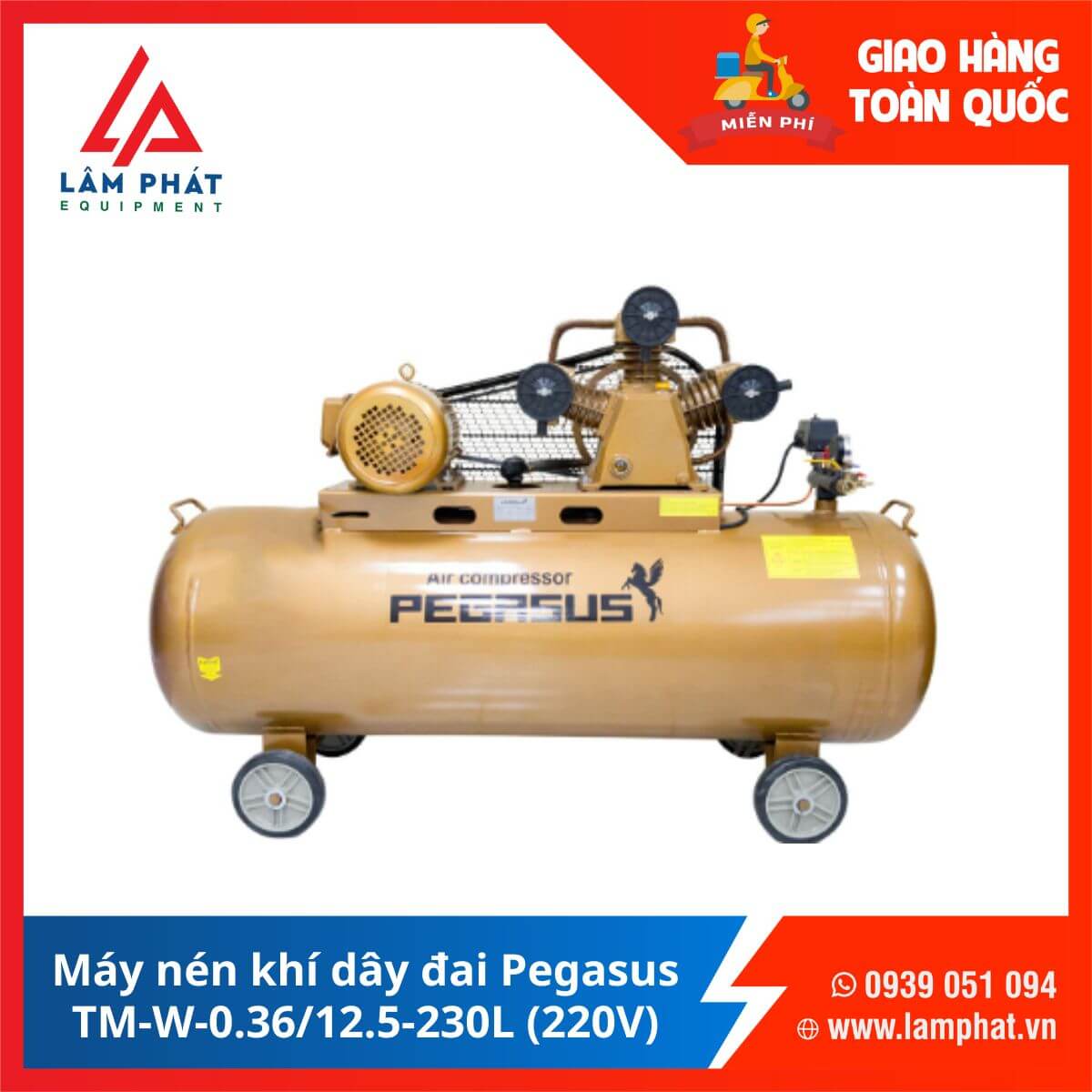 Máy nén khí dây đai Pegasus TM-W-0.36/12.5-180L (220V)