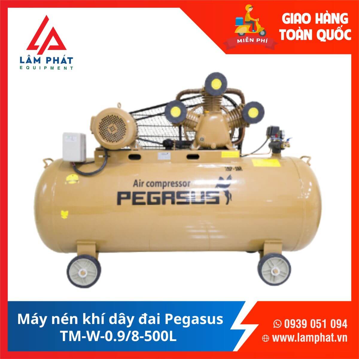 Máy nén khí dây đai Pegasus TM-W-0.9/8-500L