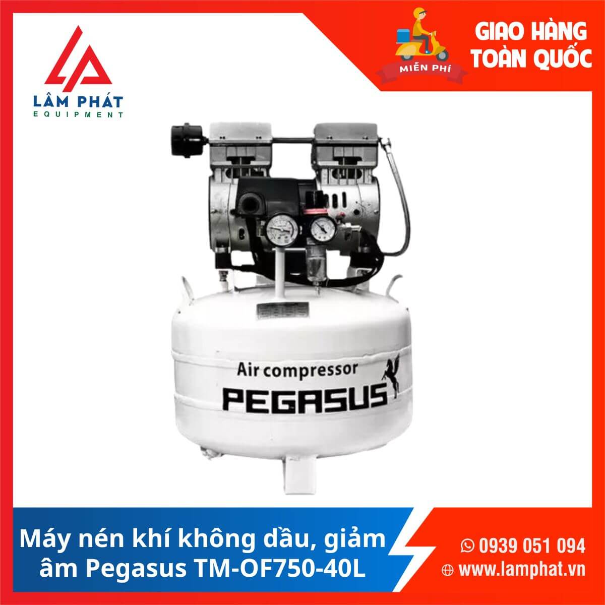 Địa điểm cung cấp Máy nén khí không dầu Pegasus TM-OF750-40L uy tín tại TPHCM