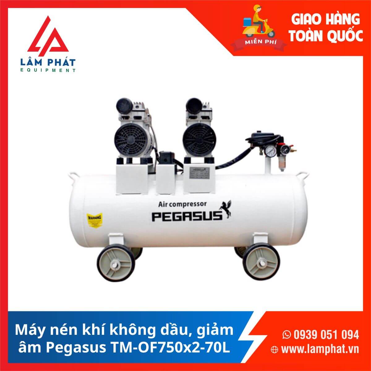 Máy nén khí không dầu Pegasus TM-OF750x2-70L