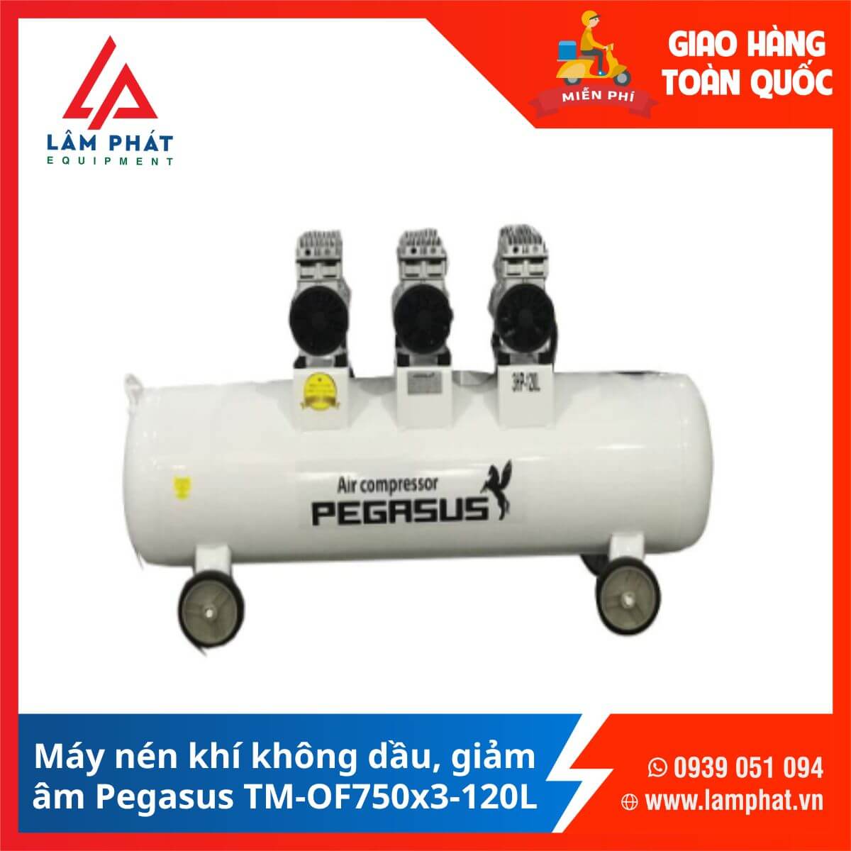 Máy nén khí không dầu Pegasus TM-OF750x3-120L