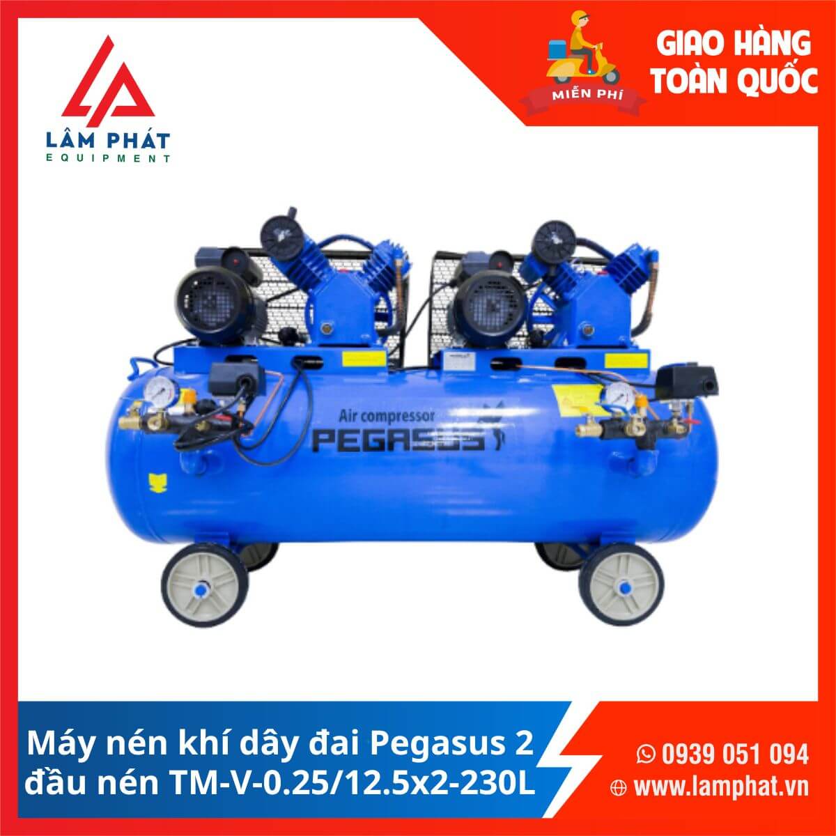 Máy nén khí Pegasus 2 đầu nén TM-V-0.25/12.5×2-230L