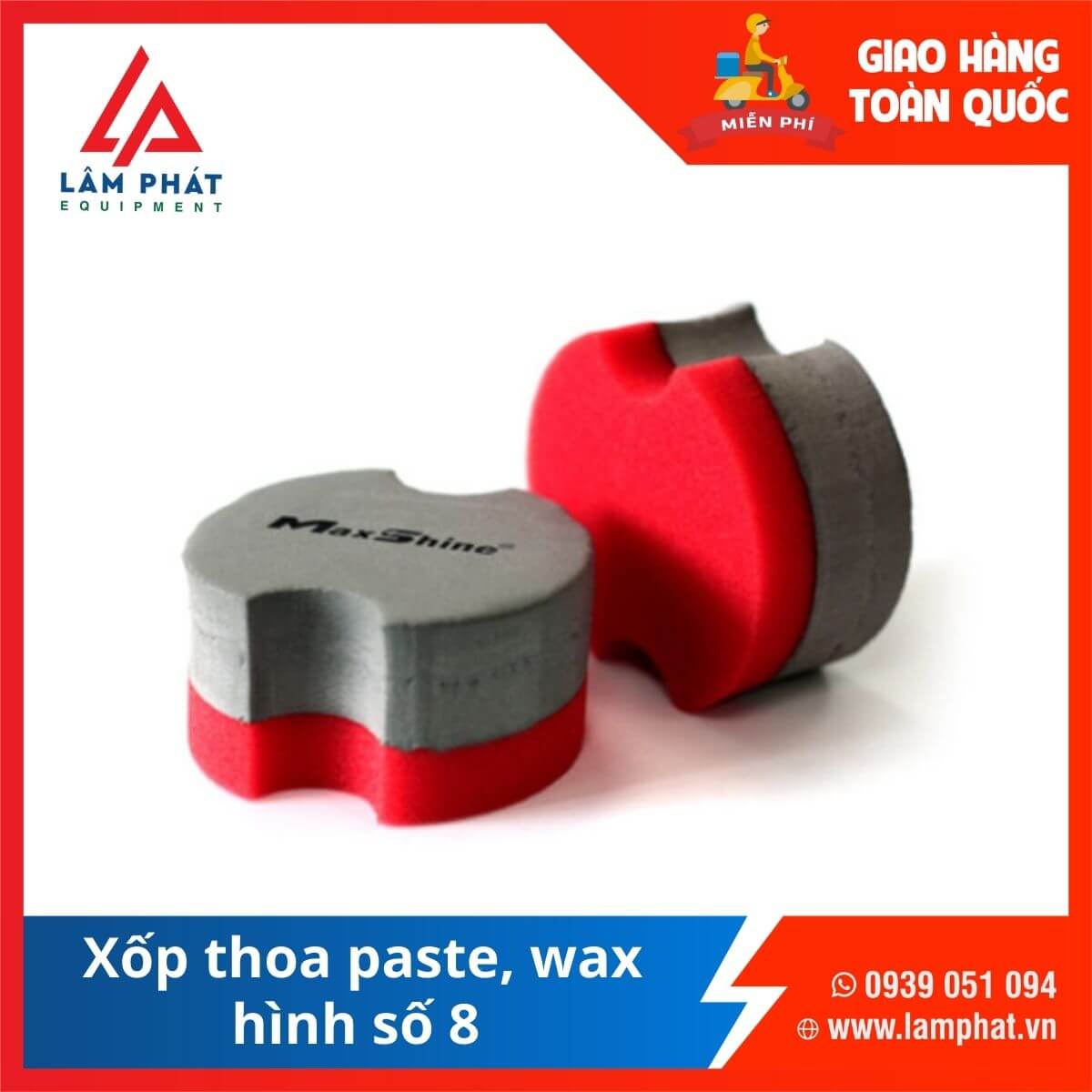 Với Xốp thoa Wax/Ceramic Maxshine từ công ty Lâm Phát, bạn có thể tự tin và dễ dàng bảo vệ và làm mới xe hơi của mình. Hãy tận hưởng sự lộng lẫy và bền bỉ của lớp sáp mà sản phẩm mang lại, và tin tưởng vào chất lượng và hiệu quả của công ty Lâm Phát trong việc cung cấp các sản phẩm chất lượng cho nhu cầu chăm sóc xe của bạn. Liên hệ số hotline 0939 051 094 để được hỗ trợ nhanh chóng!